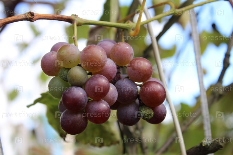 Виноград на ветке красный зеленый крупным планом. Выращивание ягод винограда. Сорт винограда для домашнего виноделия
