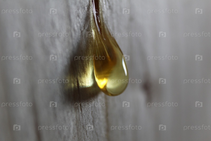 Капля смолы капает по сосновой доске. качество свежих дощатых строительных материалов