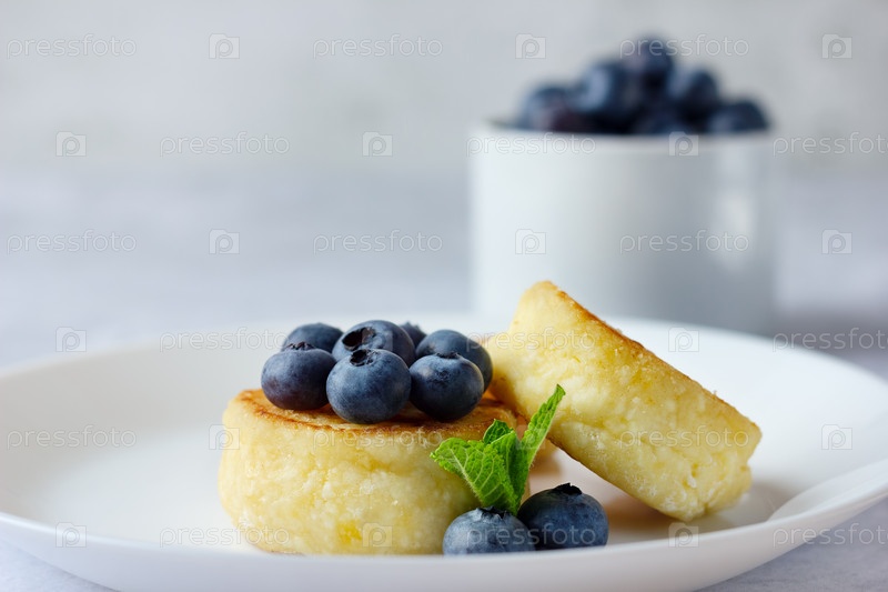 Блинчики с творогом с черникой и мятой, здоровый завтрак. Еда русской, украинской кухни. Скопируйте место для вашего текста