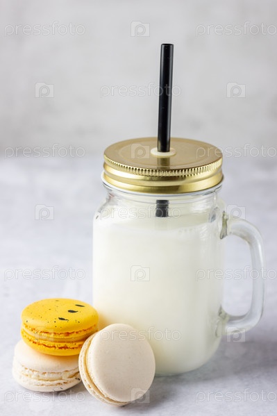 Цветные миндальное печенье с молоком в банке каменщика