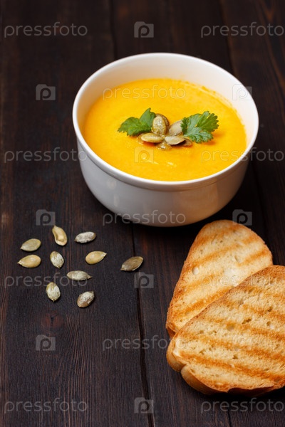 Осенний тыквенный суп с семечками, петрушкой и тостами