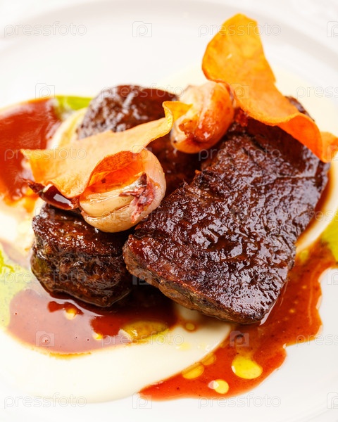 Медальоны из говяжьей вырезки с соусом и луком