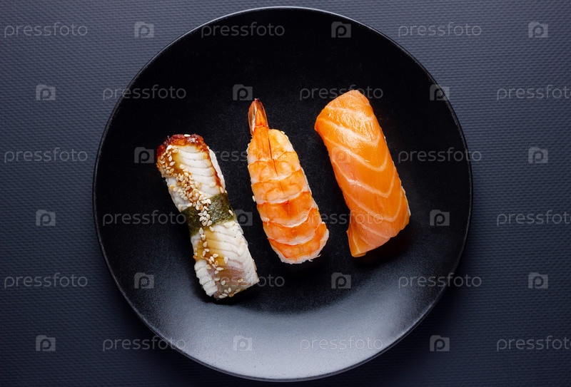 Крупным планом суши сашими на черном фоне