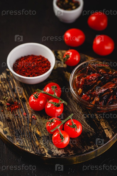 Набор помидоров, сырых и сушеных