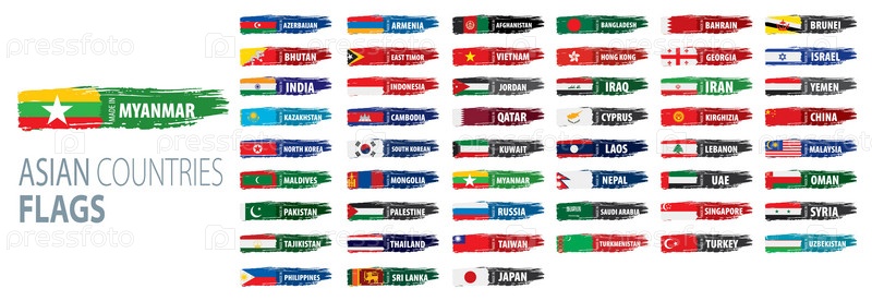 Национальные флаги азиатских стран. Векторные иллюстрации