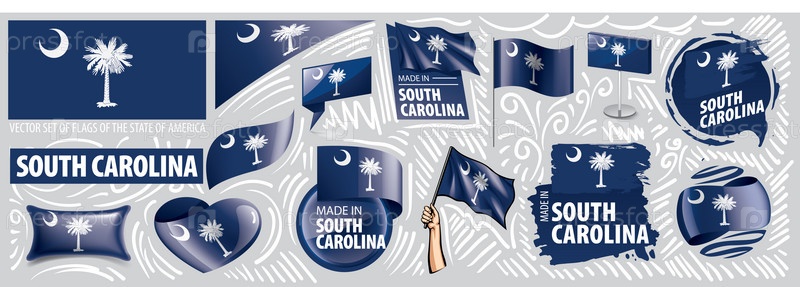 Векторный набор флагов американского штата Южная Каролина в разных исполнениях