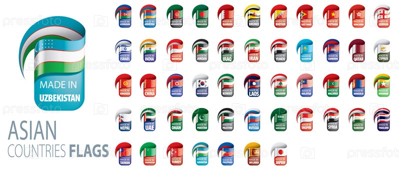 Национальные флаги азиатских стран. Векторные иллюстрации