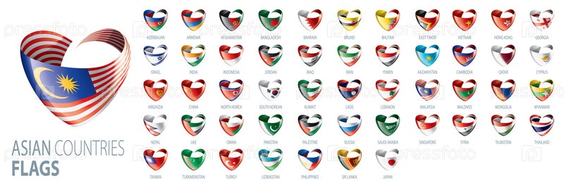 Национальные флаги азиатских стран. Векторные иллюстрации