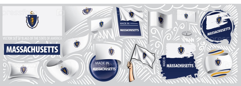 Векторный набор флагов американского штата Массачусетс в разных исполнениях