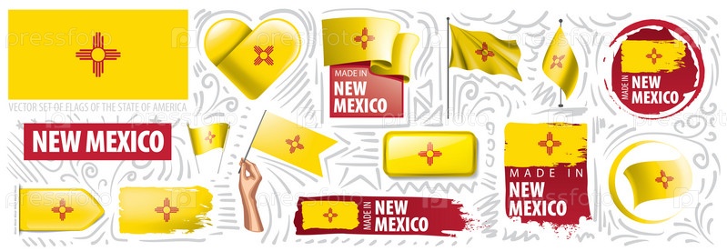 Векторный набор флагов американского штата Нью-Мексико в различных исполнениях