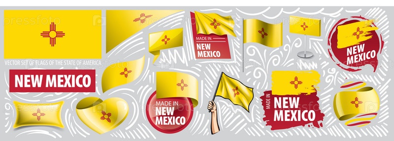 Векторный набор флагов американского штата Нью-Мексико в различных исполнениях