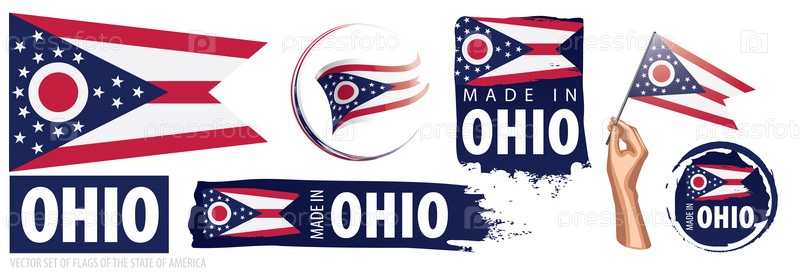 Векторный набор флагов американского штата Огайо в разных дизайнах