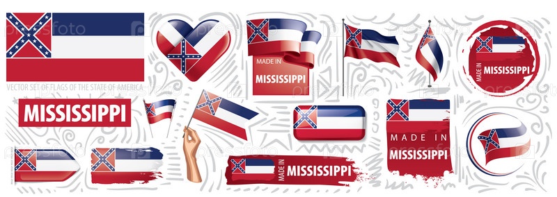 Векторный набор флагов американского штата Миссисипи в разных исполнениях