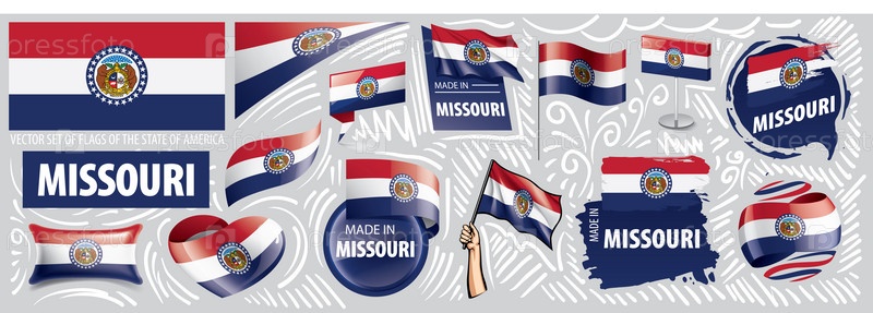 Векторный набор флагов американского штата Миссури в разных исполнениях