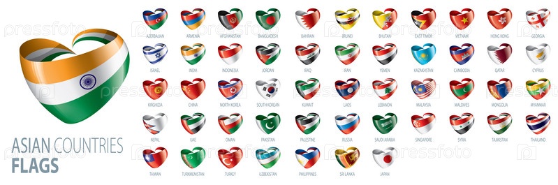 Национальные флаги азиатских стран. Векторные иллюстрации