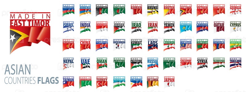 Национальные флаги азиатских стран. Векторные иллюстрации