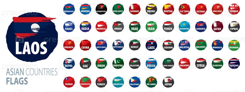 Национальные флаги азиатских стран. Векторные иллюстрации