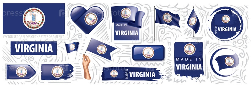 Векторный набор флагов американского штата Вирджиния в разных исполнениях