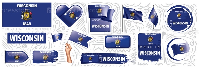 Векторный набор флагов американского штата Висконсин в разных исполнениях