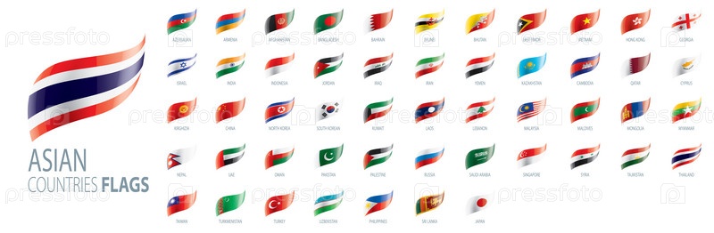 Национальные флаги азиатских стран. Векторные иллюстрации