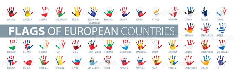 Рука и национальный флаг. Векторная иллюстрация набора европейских флагов