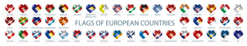 Коллекция векторных флагов Европы в виде сердец