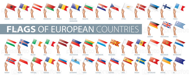 Рука и национальный флаг. Векторная иллюстрация набора европейских флагов