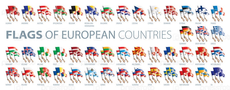 Рука и национальный флаг. Векторная иллюстрация набора европейских флагов