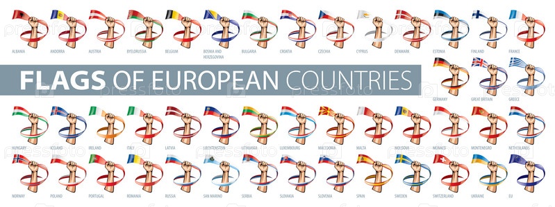 Рука и национальный флаг. Векторная иллюстрация набора европейских флагов