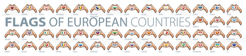 Рука и национальный флаг. Векторная иллюстрация набора европейских флагов
