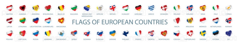 Коллекция векторных флагов Европы в виде сердец