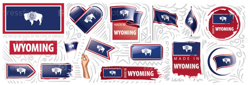 Векторный набор флагов американского штата Вайоминг в разных исполнениях