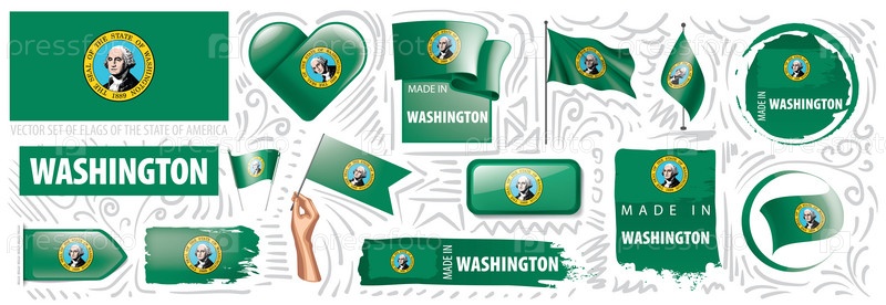 Векторный набор флагов американского штата Вашингтон в разных исполнениях