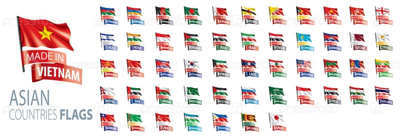 Национальные флаги азиатских стран. Векторные иллюстрации
