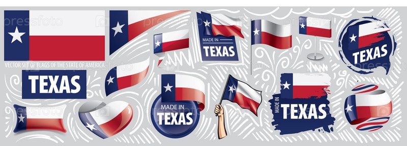 Векторный набор флагов американского штата Техас в различных исполнениях