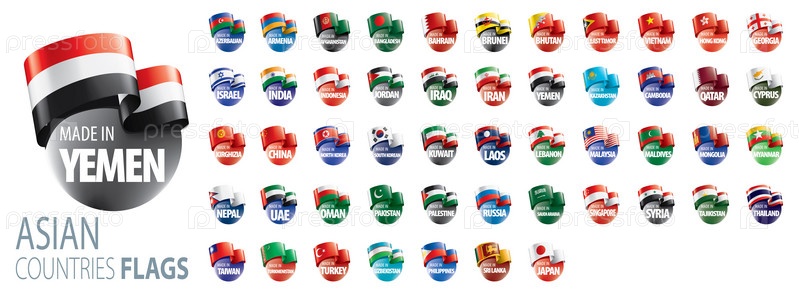 Национальные флаги азиатских стран. Векторные иллюстрации