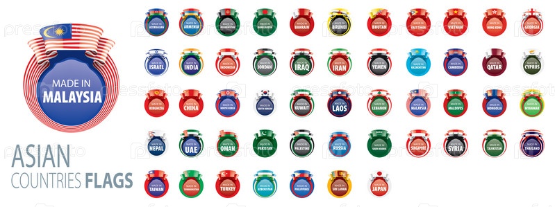 Национальные флаги азиатских стран. Векторные иллюстрации