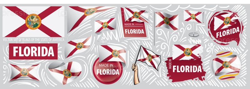 Векторный набор флагов американского штата Флорида в различных исполнениях