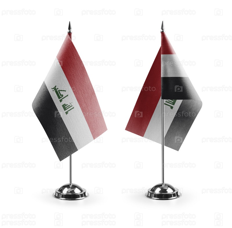 Маленькие национальные флаги Ирака на белом фоне