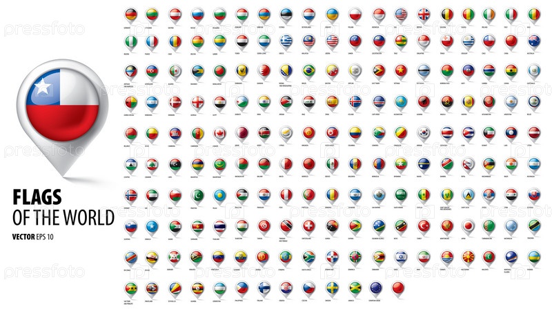 Национальные флаги стран. Векторная иллюстрация на белом фоне