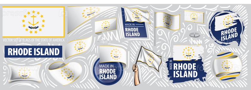Векторный набор флагов американского штата Род-Айленд в разных дизайнах