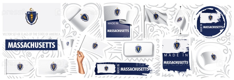 Векторный набор флагов американского штата Массачусетс в разных исполнениях