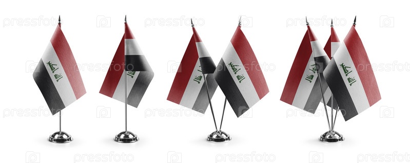 Маленькие национальные флаги Ирака на белом фоне