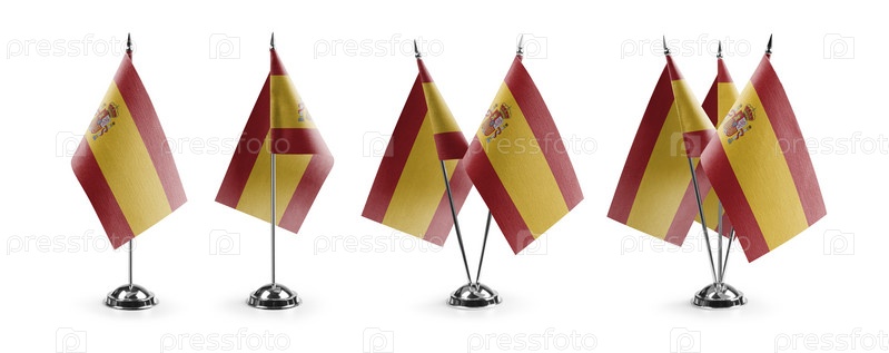 Маленькие национальные флаги Испании на белом фоне