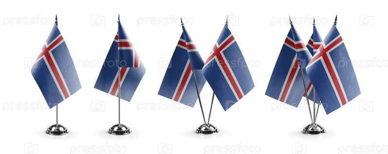 Маленькие национальные флаги Исландии на белом фоне