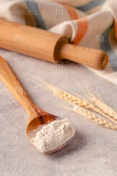 Ингредиенты для выпечки - мука, ложка, скалка