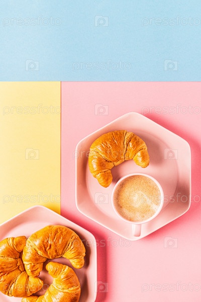 Кофе и круассаны на ярком модном фоне