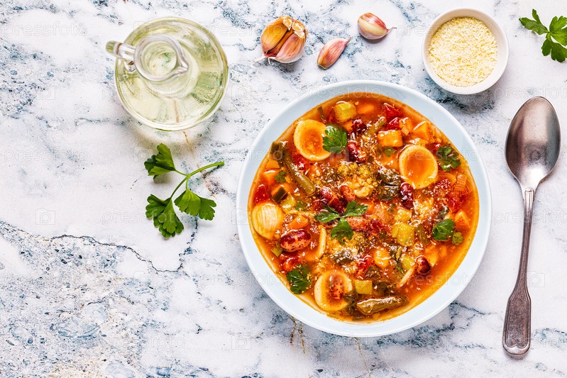 Минестроне, итальянский овощной суп с макаронами и фасолью