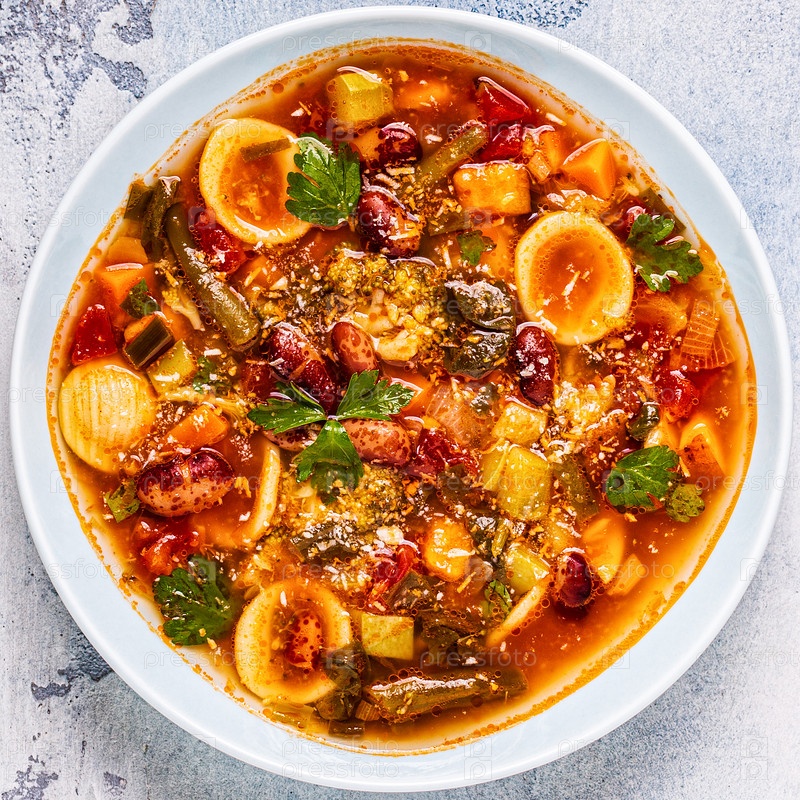 Минестроне, итальянский овощной суп с макаронами и фасолью