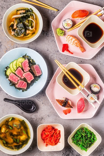 Стол с традиционной японской едой